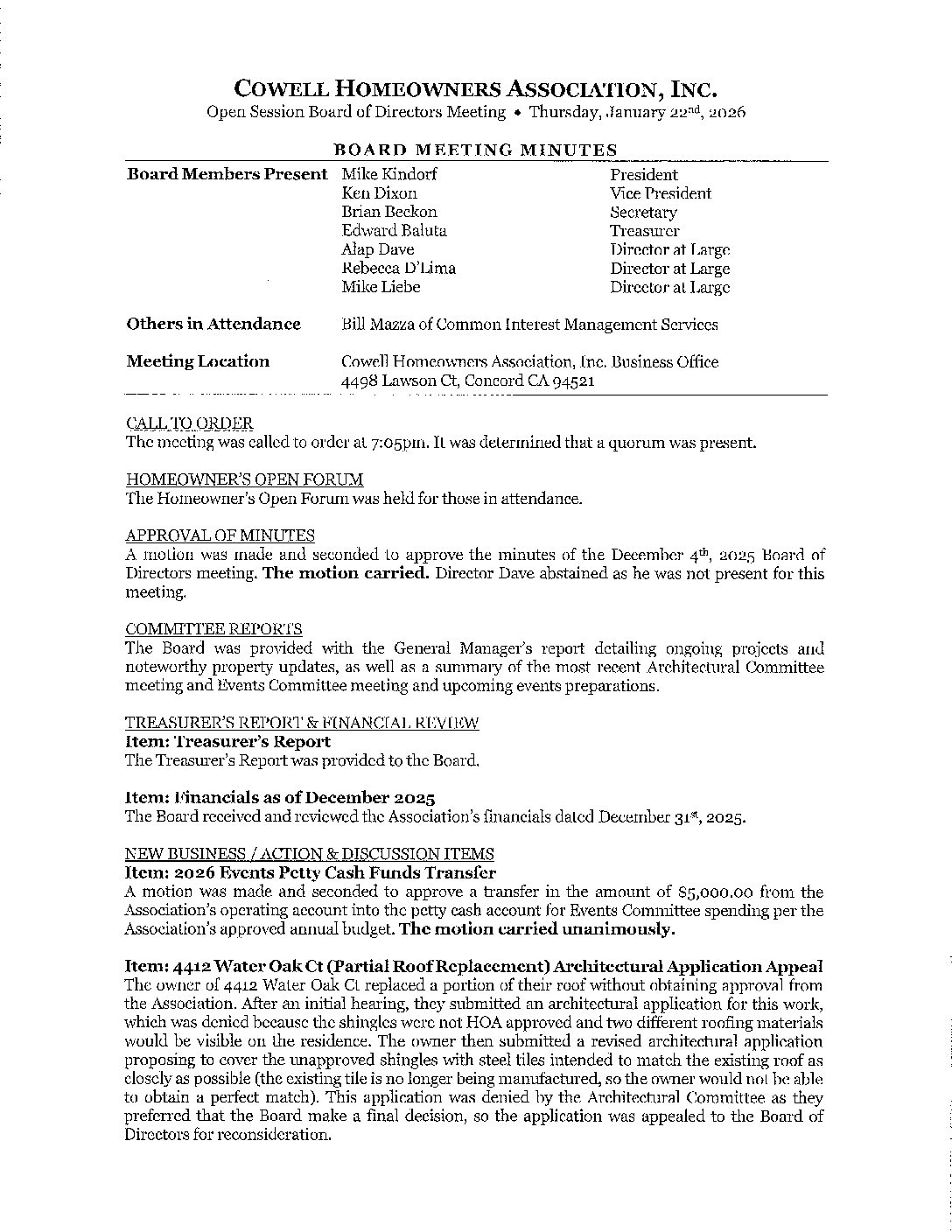 2026-01-22 – Board Meeting Minutes